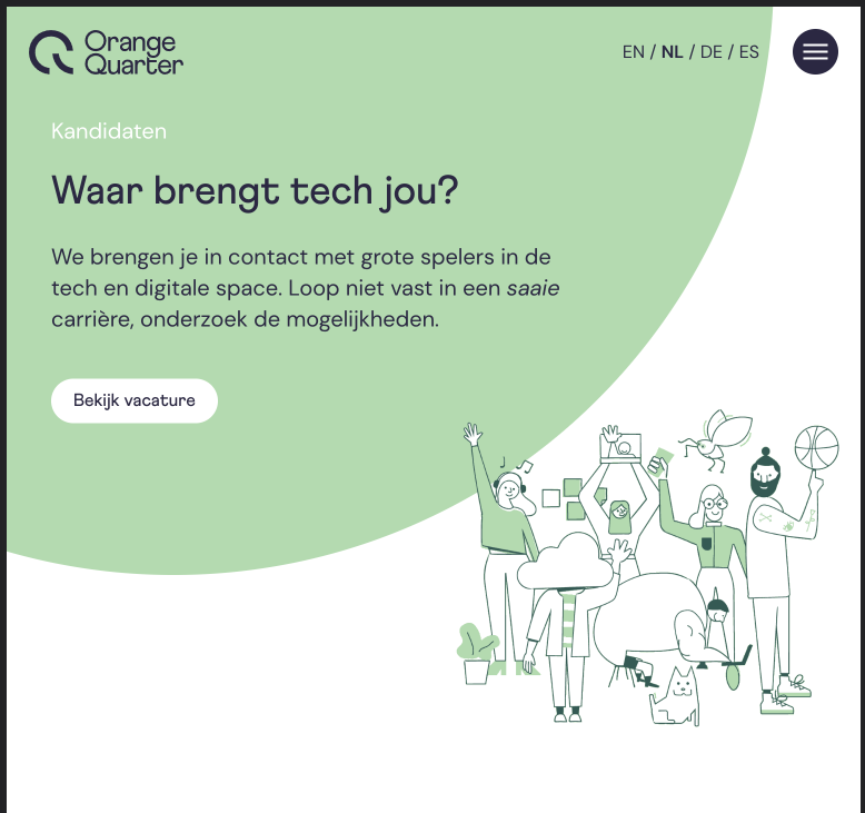 An explainer animation showcasing Orange Quarter’s role in tech recruitment and highlighting their core values of expertise, collaboration.